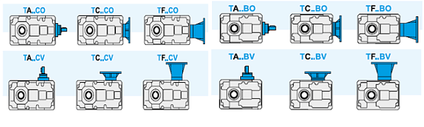 Редукторы серии Т марки TRAMEC представляют собой двухступенчатые передаточные механизмы, построенные на основе коническо-цилиндрической передачи. Изделия данного типа передают вращение под прямым углом, что указывает на определенную сферу применения. Передаточные механизмы комплектуются моторами 0,09-45 кВт, которые развивают крутящий момент до 11850 Нм и обеспечивают передаточное число до 630:1. Выпускаются двух типов в зависимости от ступеней редукции: трехступенчатые (С) и двухступенчатые (В). Коническо-цилиндрический редуктор серии T производится брендом 16 типоразмеров в алюминиевых и чугунных корпусах.